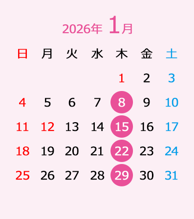 上記カレンダーの〇で囲まれた日付が配布日となっております。 ※一部金曜日に配布される地域もございます。