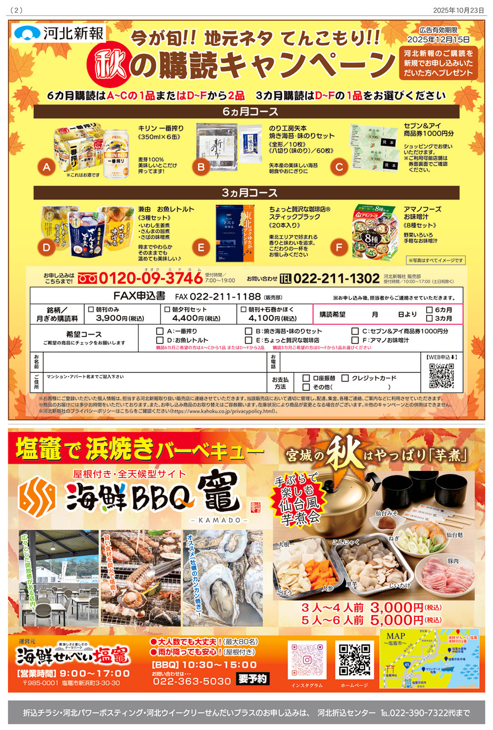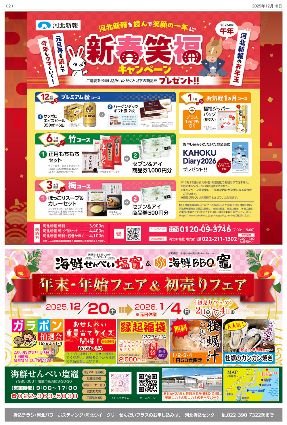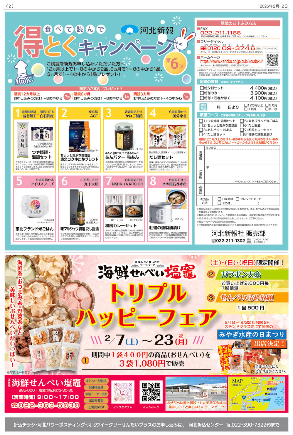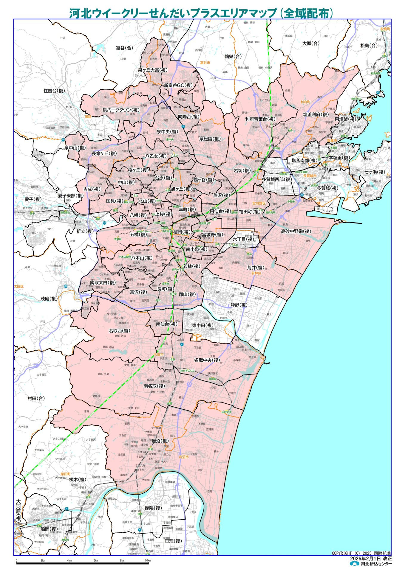 隔週(原則第2・第4)木曜日、河北新報を購読されていない仙台圏内171,600世帯へ配布します。